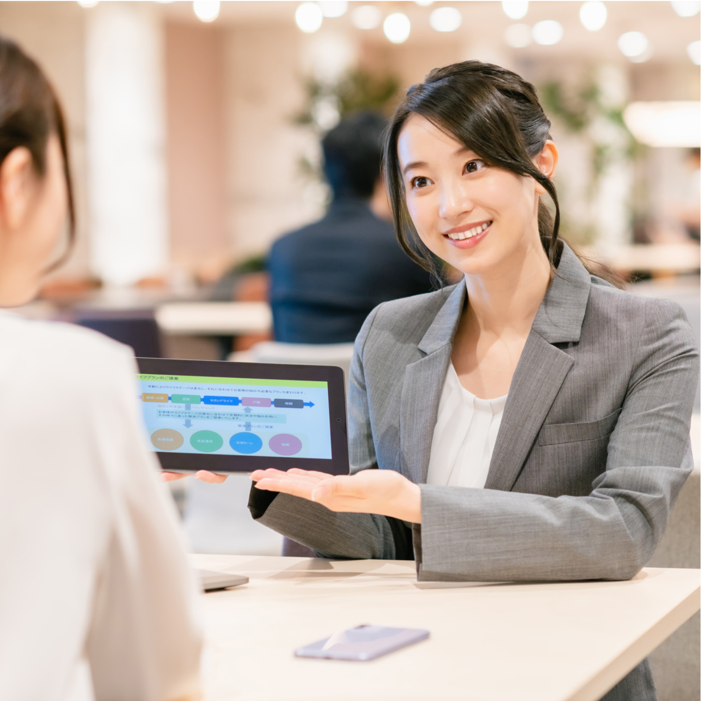 pxt00008067084302.jpg スマートフォン面談最も手軽な面談方法です pxt00006757818102.jpg オンライン面談資料やデータを見ながらよりリアルな感覚でご利用頂けます pxt00008501510202.jpg カフェ・ファミレスなどでの面談直接資料やデータを見ながらわかりやすくご説明いたします。 pxt00006414993102.jpg ご自宅での相談リラックスしてご相談いただけます pxt00007724882902.jpg ご勤務先での相談お仕事の休憩時間や終業後などの時間に合わせてお伺いいたします